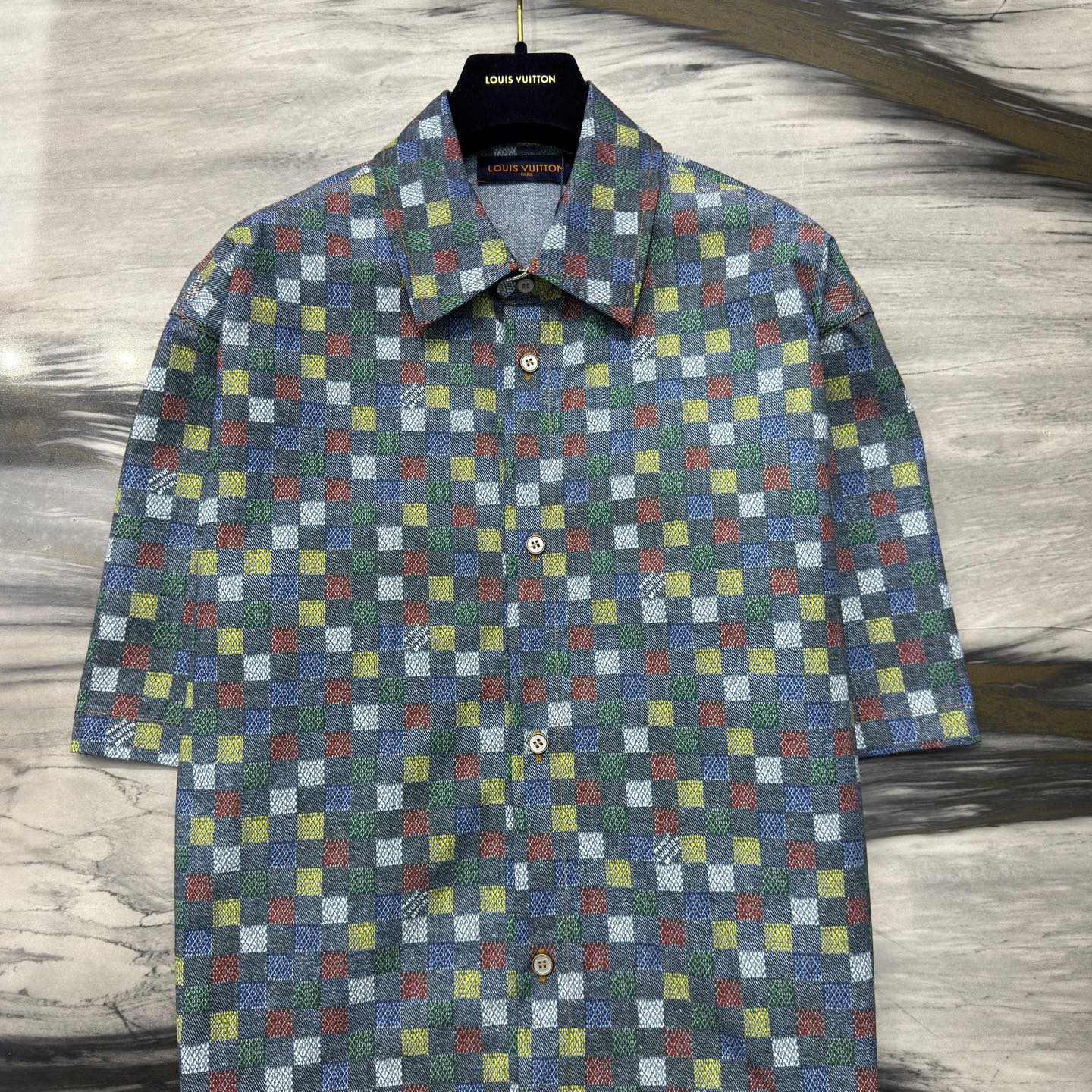 Shirt Damier Chambray Short-Sleeved